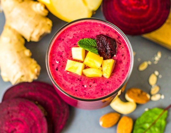 Una combinación que vuelve a lo esencial: la remolacha aporta su nota terrosa, el jengibre suma un picor aromático y el ananá cierra con frescura tropical. Un smoothie vegetal, suave y sorprendentemente equilibrado.
