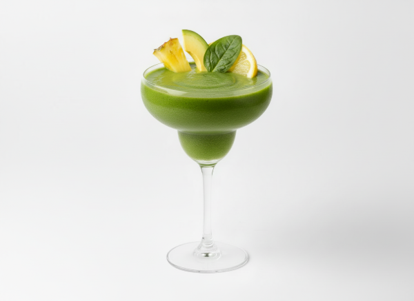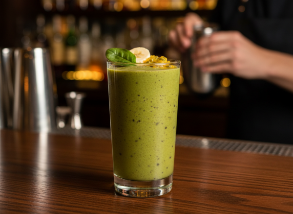 Milkshake verde: Mezclar con leche vegetal para lograr una textura cremosa y un sabor equilibrado.