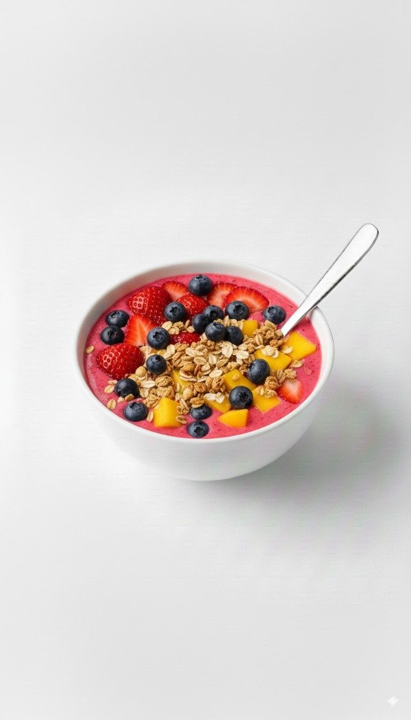 Smoothie bowl: Ideal con yogur natural o griego; complementar con granola o chips de coco.